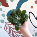 Compact, symmetrical, and wonderfully textural, Petrocosmea are miniature rosette-forming plants known for their soft, velvety leaves arranged in perfect spirals – often described as “whirlpool-like.” With their naturally low growth habit and love of high humidity, they’re ideal for terrariums, cloches, or shaded shelves, where they quietly thrive in stable, filtered light. Grown in Wales and perfect for small-space styling, Petrocosmea bring a calm, contemplative quality to your plant collection – and may even reward you with tiny violet-like blooms when happy.