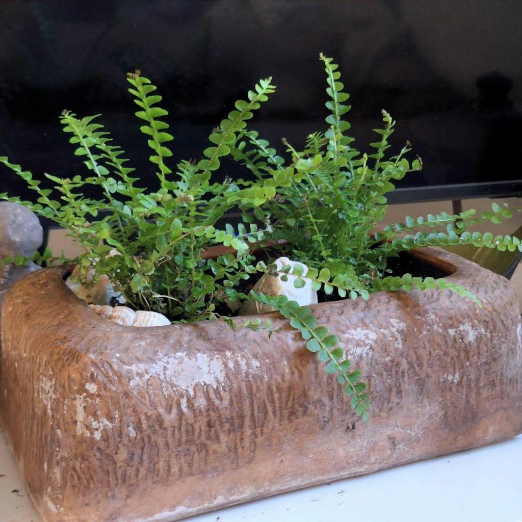 The Lemon Button Fern is a beautiful variety of fern whose leaves along each frond are a bright pale green and shaped like tiny round buttons! Like many ferns, this one loves moisture and will thrive somewhere humid where its soil doesn't dry out much. This is a dwarf variety- so is well-suited to a terrarium environment- and its leaves give off a lemony fragrance when crushed. Perfect for terrariums, happy in a shady bathroom or bright kitchen, these ferns are a great addition to your home and will reward your care, and a nice damp spot, with their adorable buttony foliage.